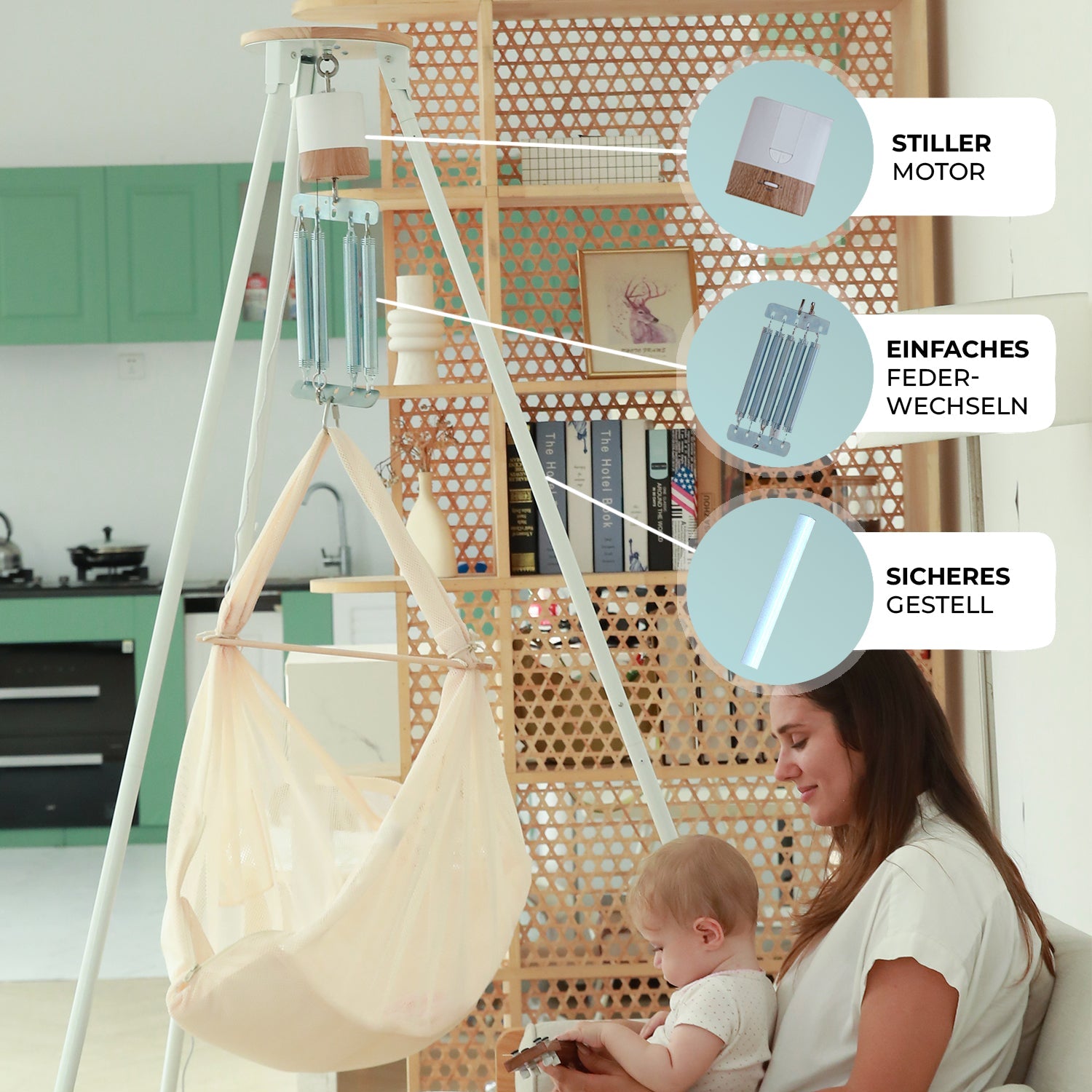 Schlaf für dein Baby. Ruhe für dich. Die automatisierte Federwiege, die wiegt, während du dich entspannst.